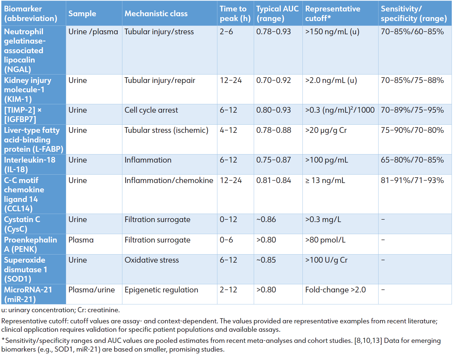 Table 1: Diagnostic performance of key and emerging AKI biomarkers (Pooled 2024–2025 data)